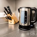 Este apartamento dispone de servicio de tetera/cafetera y una cocina completa con un hervidor eléctrico, una nevera y un horno.